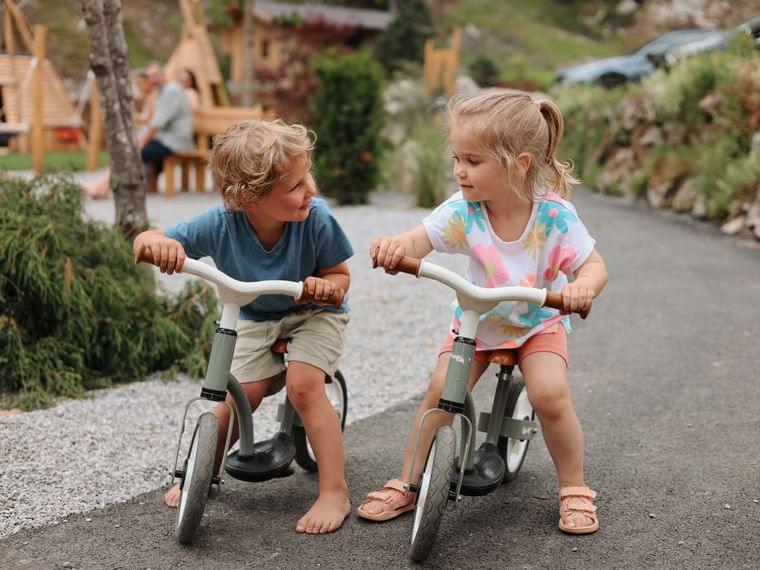 Auf Baumstämmen balancieren, mit Mama und Papa gemütlich am knisternden Lagerfeuer sitzen, Lieder singen und spannende Geschichten erzählen. Oder doch lieber hoch zu Ross oder Kuh sitzen? Bitte einmal alles! Und wer lieber am Boden bleibt, entdeckt noch andere Bewohner unseres Bauernhof Resorts.
