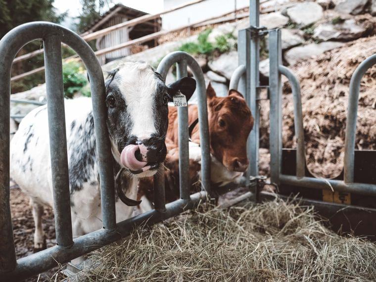 Zweisprachige Schautafeln, in Deutsch und in Englisch, zeigen unsere Bauernhoftiere und geben alle wichtigen Informationen kindgerecht weiter. So erfahren die Kinder spielerisch viel über unsere Tiere, die Natur und die Pflanzenwelt. Wertvolles Wissen, das sie immer wieder brauchen können. Die Erkundungstour auf dem Bauernhof kann für die Kleinen ganz schön intensiv sein, denn die Bauernhoftiere wollen nicht nur gestreichelt werden. Bei der Fütterung am Nachmittag erklärt Betreuerin Erika den jüngsten Gästen auch gerne alles über Futtergewohnheiten und Pflege der Tiere. Unsere Kühe werden von den Bauern Alfons, Hubert oder Tobias am späten Nachmittag bzw. frühen Abend gefüttert. Ihr trefft unsere Bauern im Stall und könnt von ihnen die genauen Zeiten erfahren. Von Mitte Juni bis Mitte September sind einige unserer Kühe auf Alm, der Rest weidet direkt bei uns im Ort und kann bei gemütlichen Spaziergängen besucht werden.