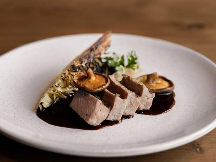 Pink saddle of Malitz ox with summer vegetables, potato cake and pimento jus or would you prefer the grilled fillet of sea bass with parsnip cream, zoodles, fregola sarda and yellow pepper sauce? And then the strawberry cheesecake with caramelised white chocolate sorbet? Your mouth is already watering? That's a good thing, because that's a small excerpt from the evening menu. Of course, we can't promise you exactly what you'll get. Because the kitchen changes the menu every day. But what we can promise you is that you can expect a culinary journey of pleasure throughout the day.
