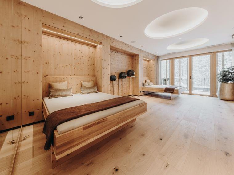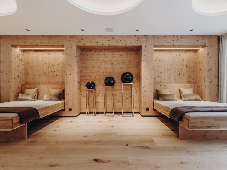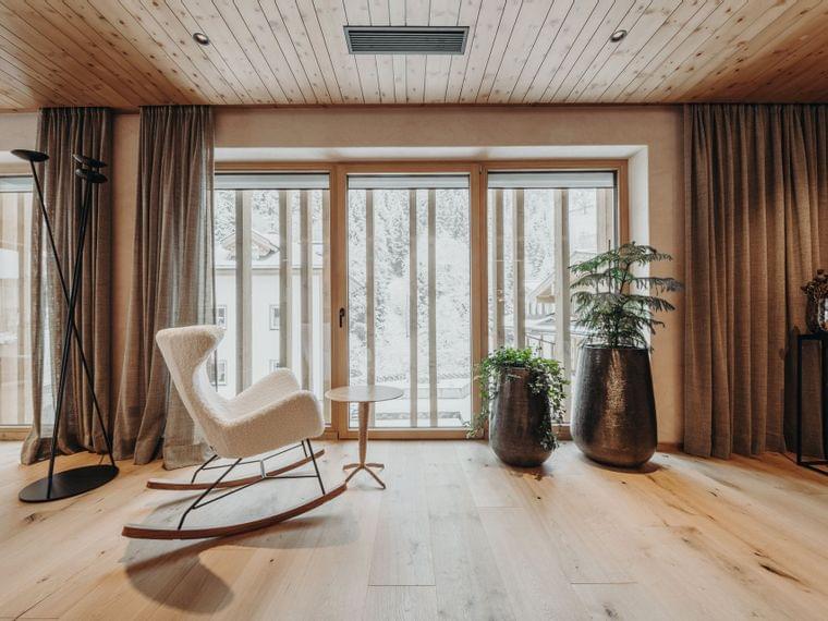 The view gives our relaxation room its name and it couldn't be more fitting: Forest Whispers. In pure relaxation, you can look out of the window towards the "Habach" torrent and the surrounding deciduous and coniferous forest, watch the birds at work and listen to the soothing sound. Mindfulness, peace, relaxation and recreation are the top priorities here.